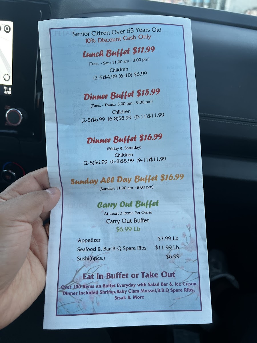 Lunch: 7.99 lb Dinner: 7.99 lb Appetizers 8.99 lb I Any Seafood, BBQ, Spare Ribs: 11.99 lb